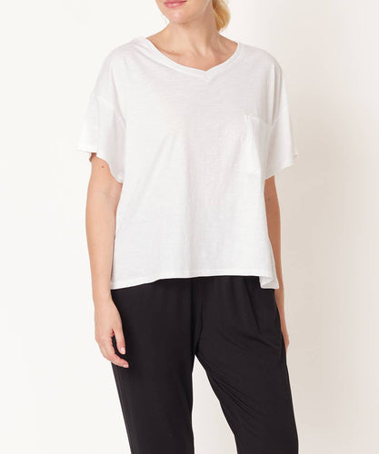 Fabina - COTTONSLUB V NECK OVERSIZE CROP: WHITE / LARGE