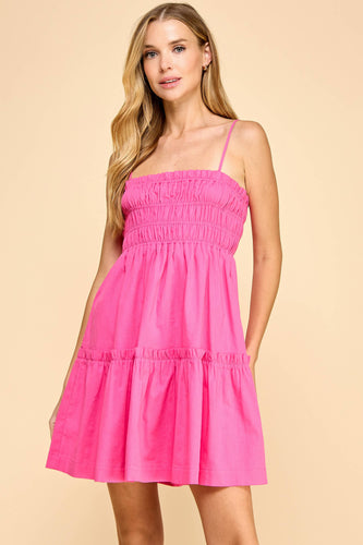 TCEC - CD04621-Spaghetti Straps Ruffle Trim Dress: Pink / M