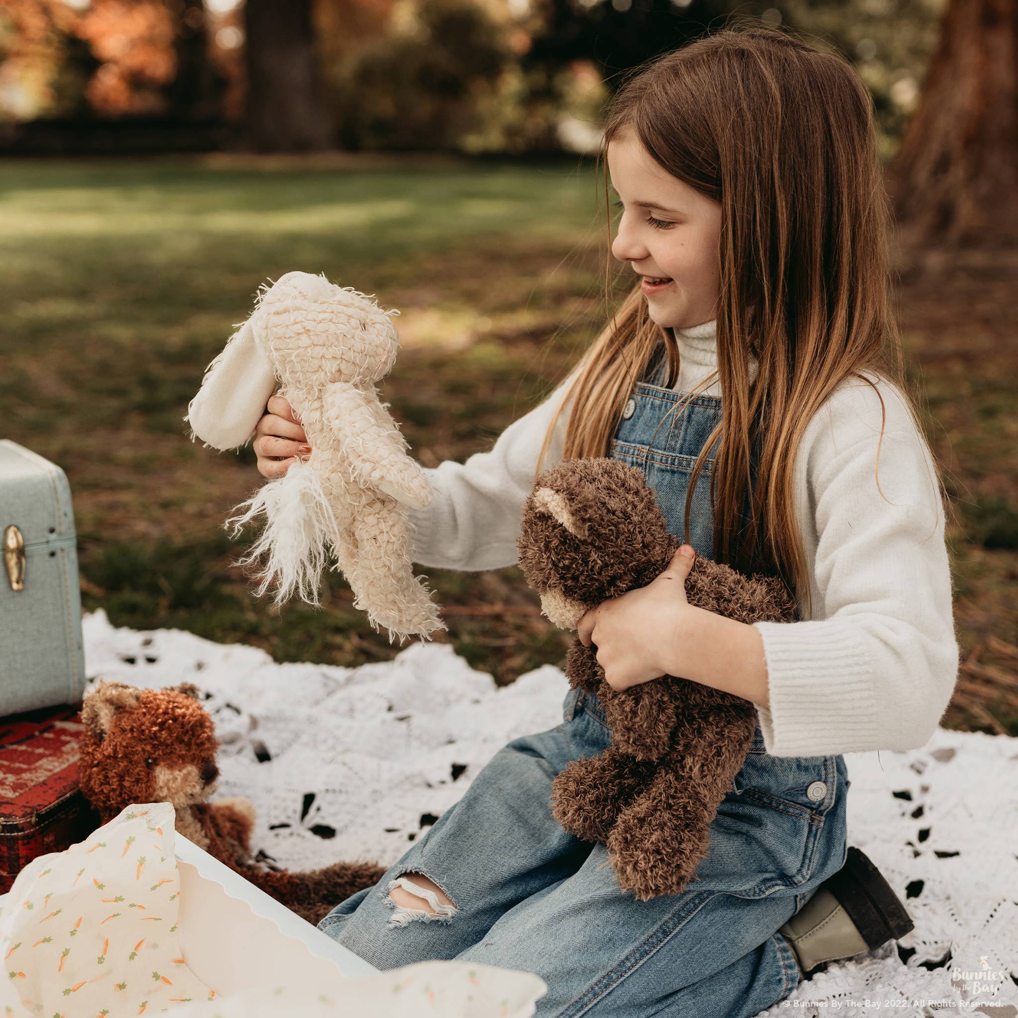 Features Size: 11" Vintage look and feel Embroidered features Safe for all ages 100% Polyester This stuffed animal is surface wash only. Hiding under a bush? Oh, no, not Harey the Bunny Rabbit -- he’s one of the stuffed animal gang. Warm almond scraggly fur body with handcrafted, embroidered face and a very bushy white tail. Harey is our favorite little bunny rabbit woodland friend over at Camp Cricket.