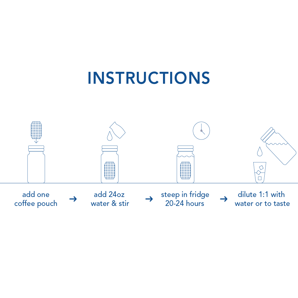 Making cold brew at home just got a lot easier! Each single-use pouch contains 3oz of pre-ground coffee specifically for cold brew. One pouch fits perfectly in your favorite brewing vessel to create a delicious cold brew overnight in your fridge.