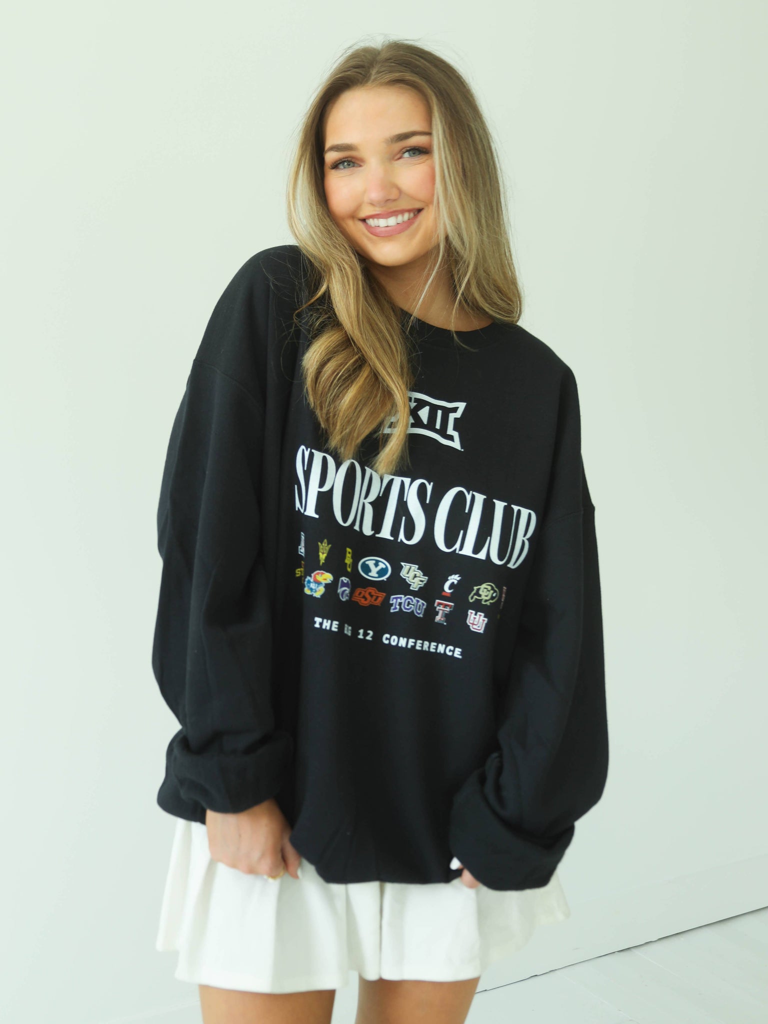 For all members of the Big 12 Sports Club - whatever school, whatever sport! This unisex black sweatshirt features the Big 12 logo and the logos of all the Big 12 teams.